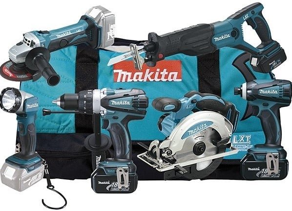 Tags Makita comboset DLX6011 toolmax cirkelzaag reciprozaag slagschroevendraaier haakse slijper lamp lxt600