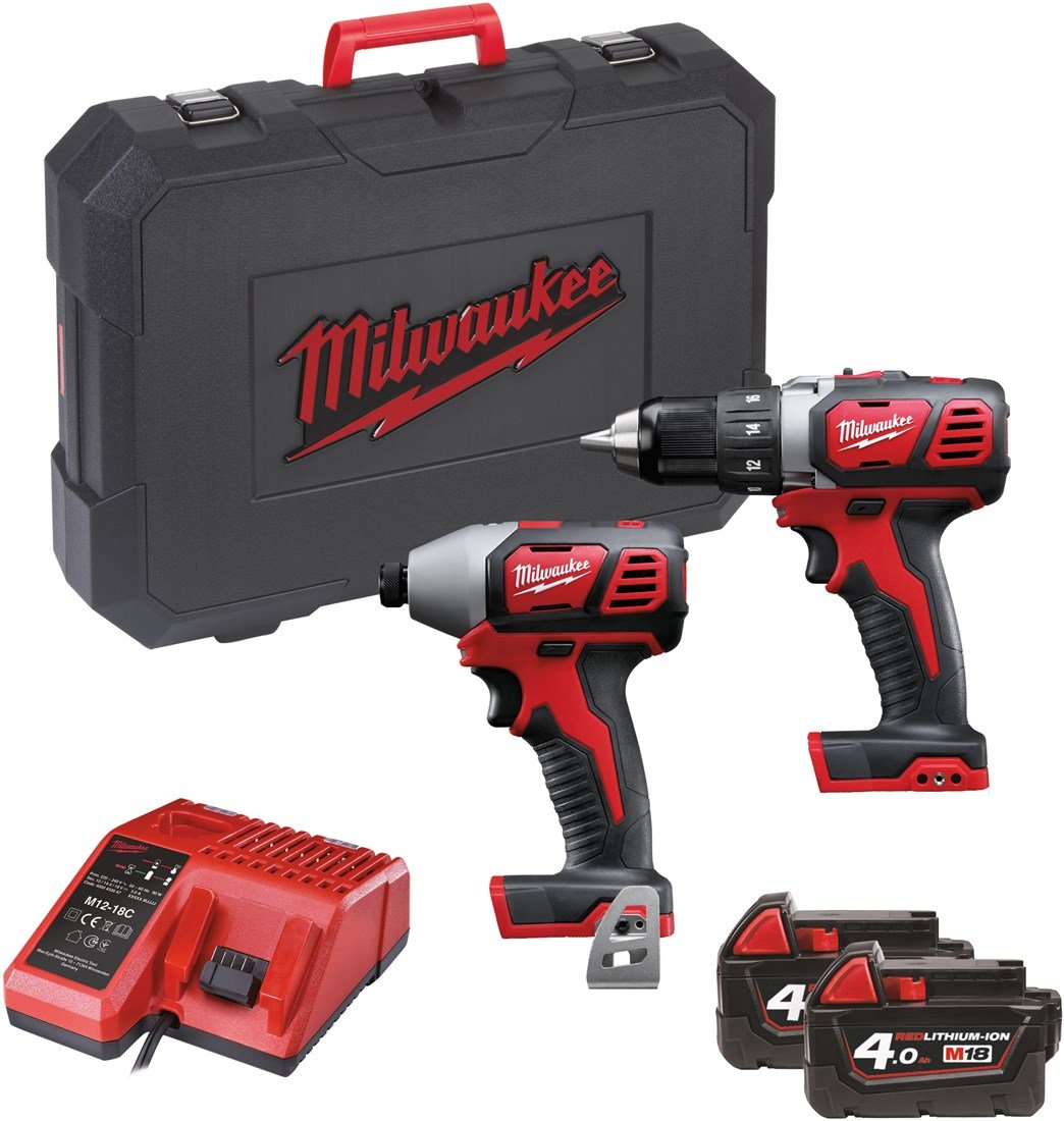 Milwaukee M18 BPP2D-402C Powerpack (M18BDD+M18BID+(2) 4.0Ah 18V+(1) M1218 lader+koffer)